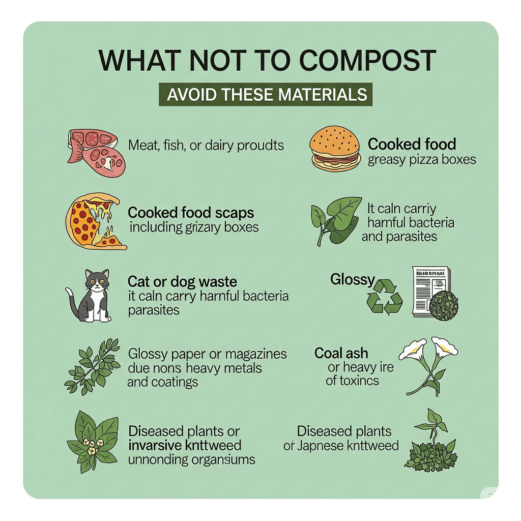 | Attracting pests | Wrong materials (e.g. meat) | Stick to veg scraps only |