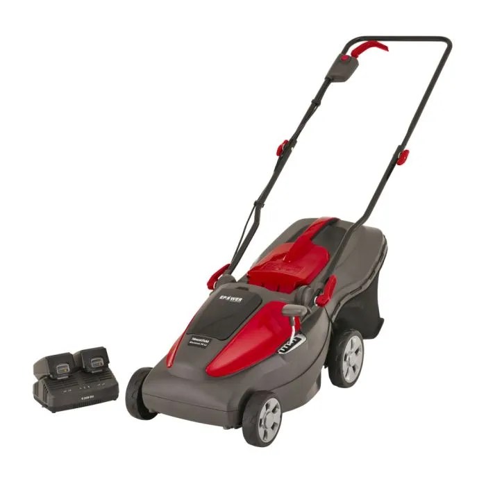 2. Q: What is the battery life and charging time for the Electress 34 Li? A: The Mountfield Electress 34 Li comes with two 20V lithium-ion batteries. When fully charged, these batteries provide a combined runtime of approximately 30 minutes, which is generally sufficient for its recommended lawn size. Each battery takes around 140 minutes to fully charge using the included dual-port charger.